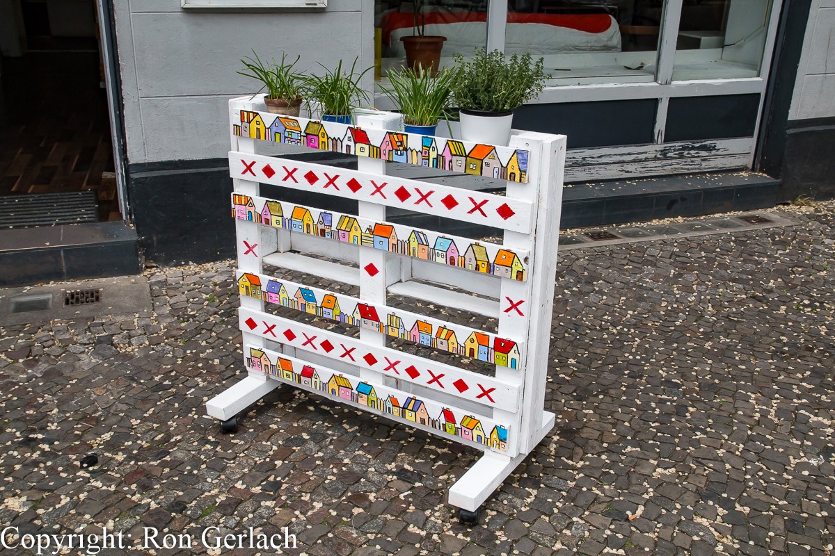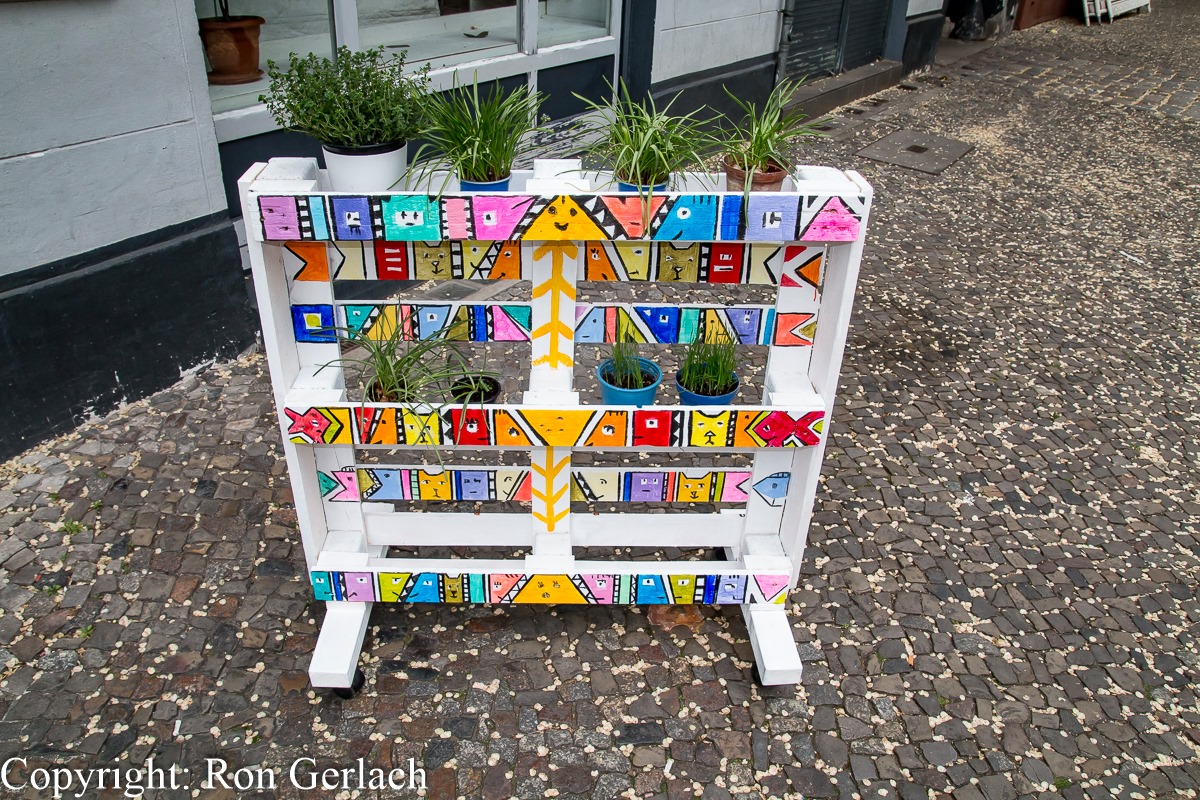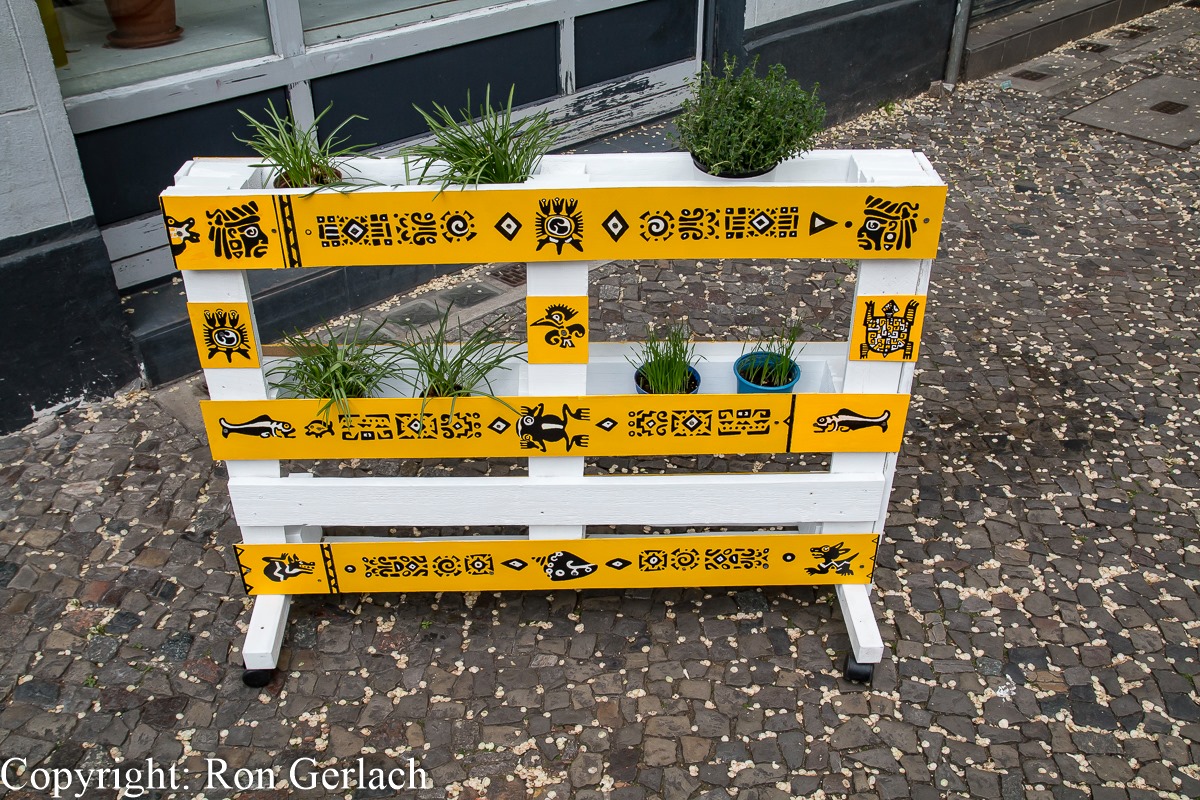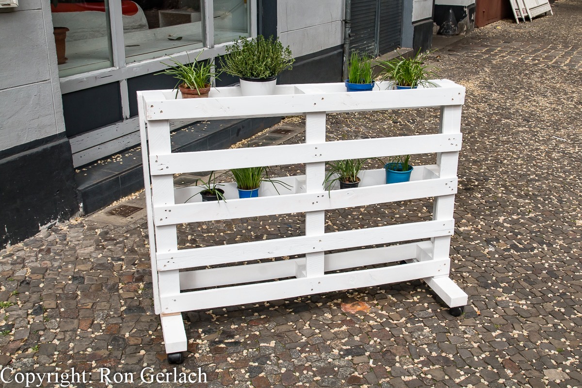 "Lokal gewürzt" ist ein vom Quartiersmanagement Soldiner Kiez gefördertes Projekt mit dem Ziel, das Konzept 'Essbare Stadt' zu unterstützen. Hierzu baut die Holzwerkstatt von HoFaTex ausrangierte Transportpaletten eines Möbelkaufhauses zu rollbaren Regalen um. Dann werden diese jeweils mit bis zu 16 Kräutertöpfen aus eigener Aufzucht bestückt und anschließend an Cafés, Restaurants und andere öffentliche Begegnungsstätten im Soldiner Kiez verteilt. Jedes der Regale ist ein Unikat, das von den Künstler*innen von Made in Wedding verziert wird. So verschönern diese praktischen Kunstwerke das Wohnumfeld und laden die Nachbar*innen ein, sich frische Kräuter zum Kochen mit nach Haus zu nehmen. Ganz nebenbei finden sie in der Flyerhalterung der Regale Informationen zum Konzept 'Essbare Stadt'.