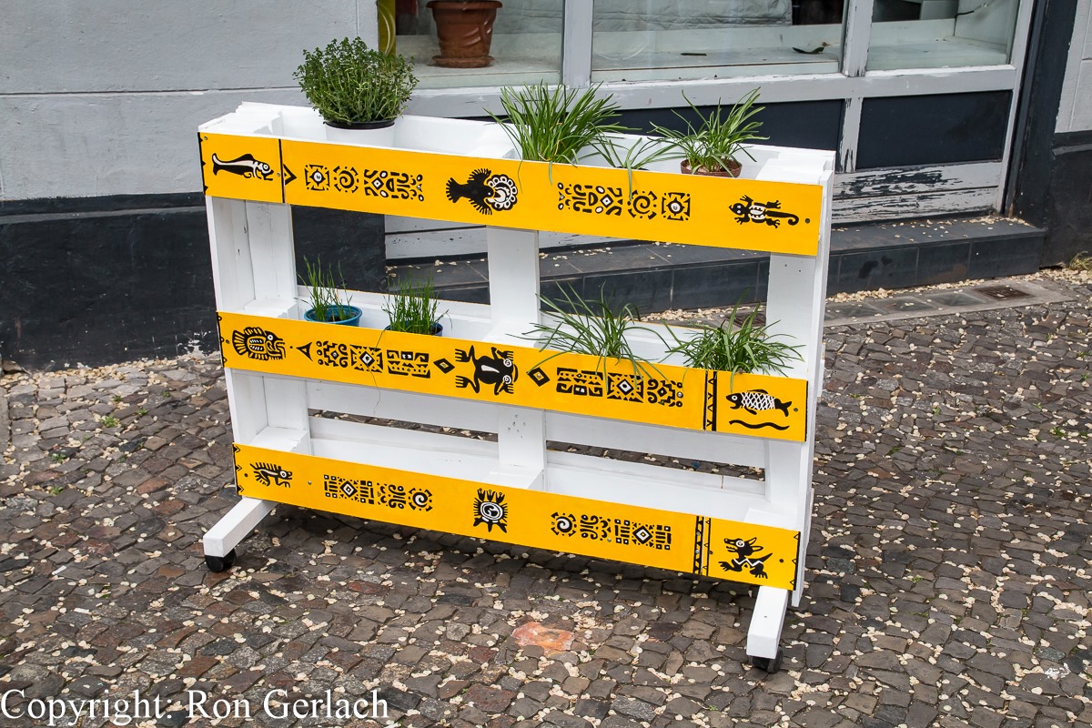 "Lokal gewürzt" ist ein vom Quartiersmanagement Soldiner Kiez gefördertes Projekt mit dem Ziel, das Konzept 'Essbare Stadt' zu unterstützen. Hierzu baut die Holzwerkstatt von HoFaTex ausrangierte Transportpaletten eines Möbelkaufhauses zu rollbaren Regalen um. Dann werden diese jeweils mit bis zu 16 Kräutertöpfen aus eigener Aufzucht bestückt und anschließend an Cafés, Restaurants und andere öffentliche Begegnungsstätten im Soldiner Kiez verteilt. Jedes der Regale ist ein Unikat, das von den Künstler*innen von Made in Wedding verziert wird. So verschönern diese praktischen Kunstwerke das Wohnumfeld und laden die Nachbar*innen ein, sich frische Kräuter zum Kochen mit nach Haus zu nehmen. Ganz nebenbei finden sie in der Flyerhalterung der Regale Informationen zum Konzept 'Essbare Stadt'.